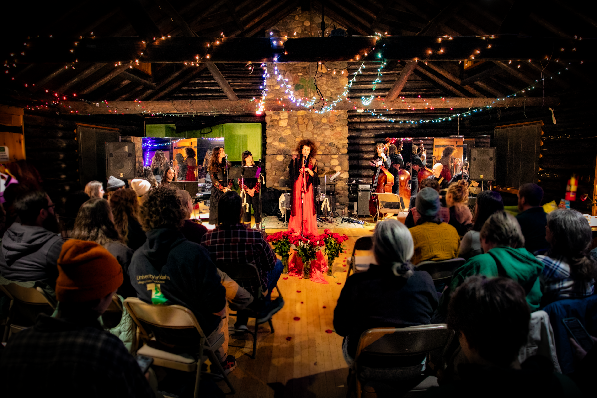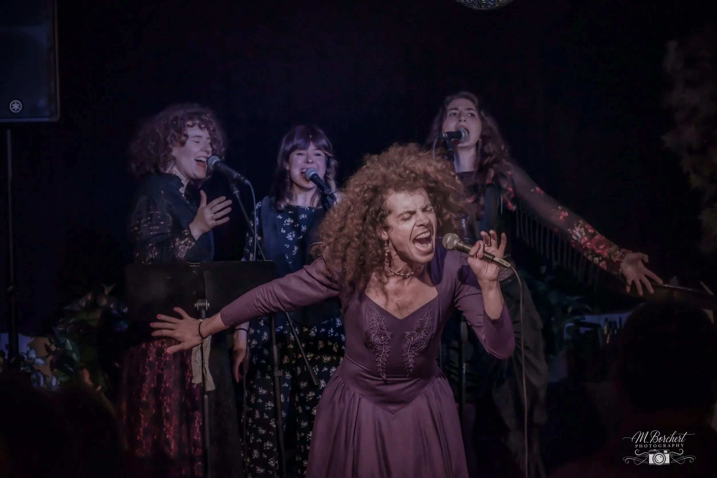 In 2018 Carlisle released the ambitious orchestral rock epic Electric Porcelain, which was followed by performances throughout the midwest with their eight piece band “The Lady’s Slippers” and a self-organized national solo tour. In January of 2020, they retreated to hearth and home to record in one snowy evening a collection of virtuosic piano-driven songs about apocalypse as rebirth. These would become the solo EP The Last Noble Thing, released in 2021 with an accompanying lyric and art book by Ramshackle Press. With their 2021 single Hyacinth and Apollo, recorded at their home in Minneapolis, they turn to the guitar as a muse in an ethereal and heartbreaking retelling of Greek mythology. In 2022, they returned to glamorous rock and roll drama with Iconoclasm at the Cedar Cultural Center, and later expanded into a mythic cabaret musical in 2024 on a tour throughout Minnesota. As emcee and a chanteuse doing drag as queer ancestors, and with a seven piece band and a trio of fates, Iconoclasm conjured memories of forgotten queer history in a one-of-a-kind new mythology.